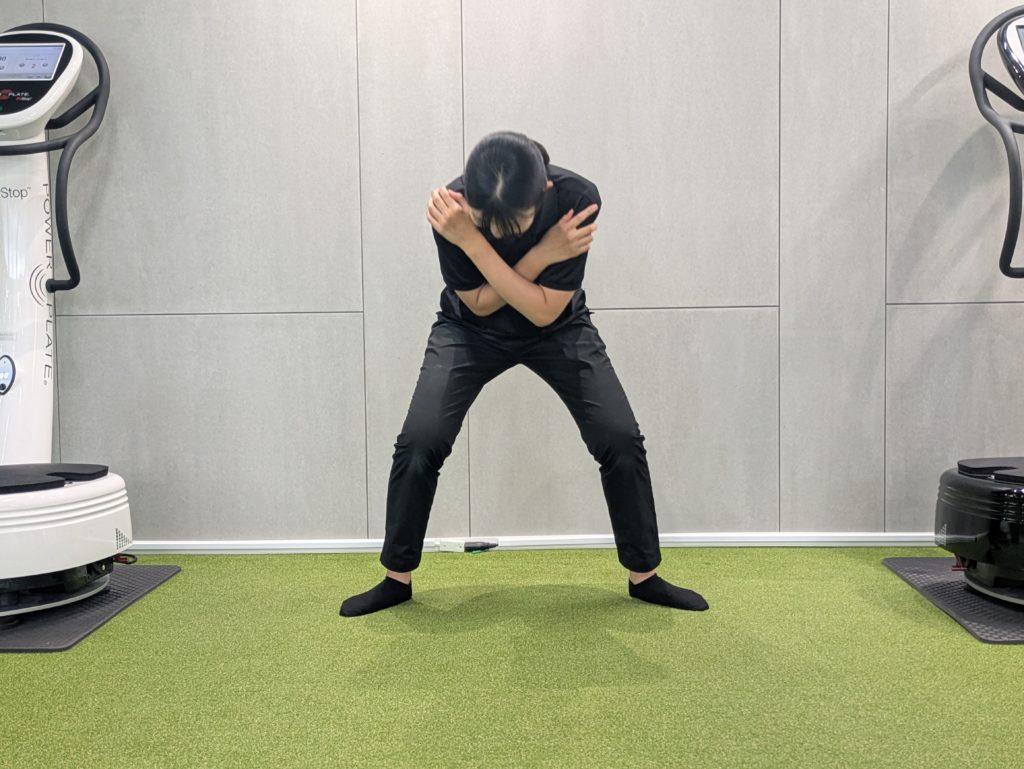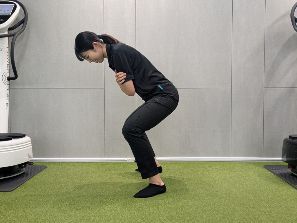スクワット: 1日10回×2セットから。太ももとお尻の大きな筋肉を刺激します。