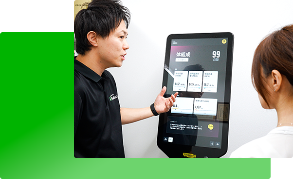 測定結果を元に個々の目標に合わせた最適なプランで、専門トレーナーがマンツーマン指導を行います。